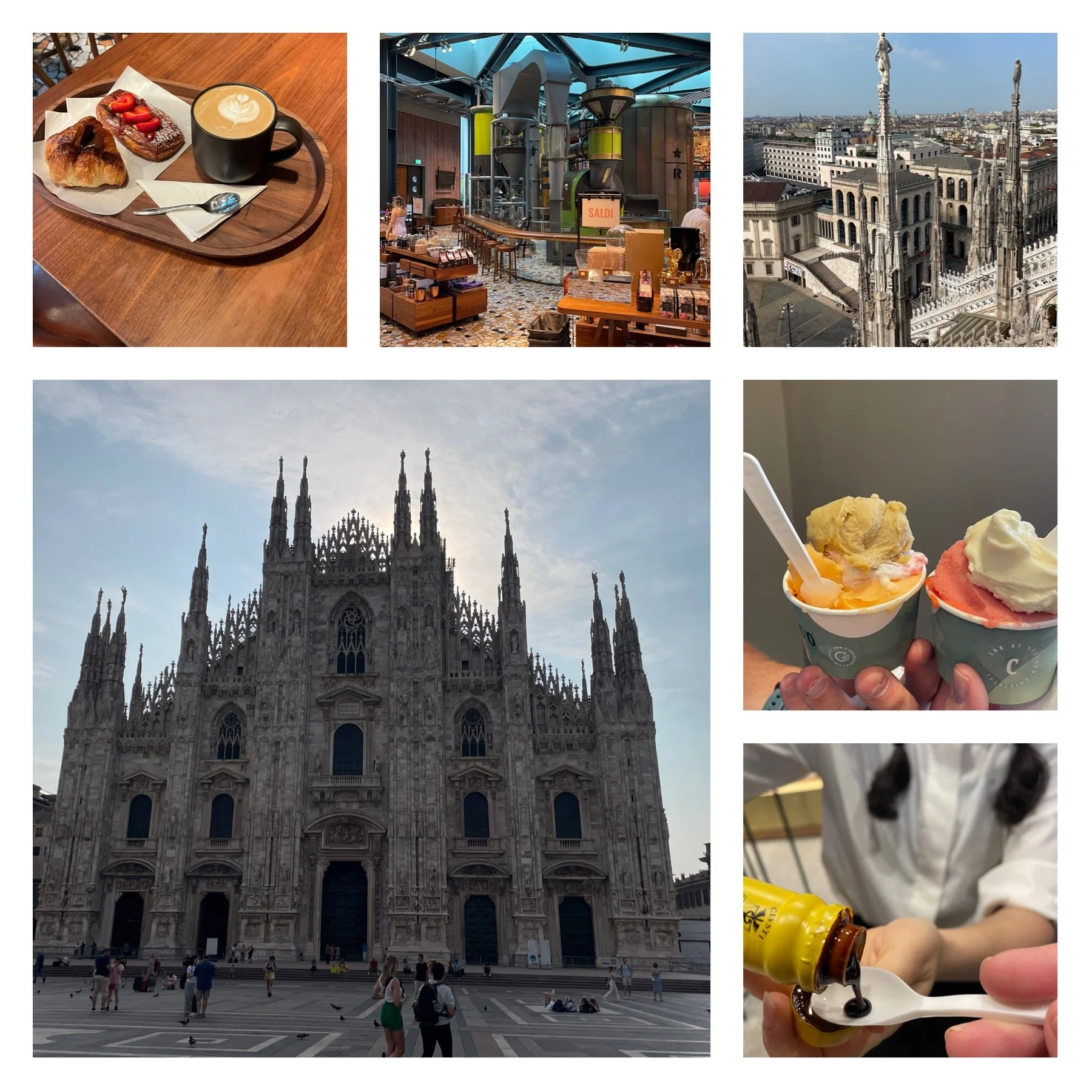 July 15, 2023: Our first day in Milan we started at the Starbucks Reserve Roastery, the first Starbucks that was introduced to Milan. It opened in September 2016. It was a dream 35 years in the making. The Milan Roastery is considered the crown jewel of Starbucks global retail– a place where Italian customers and tourists from around the world can come to discover the art and science of coffee in a breath‐taking environment that is both an homage to the city of Milan and a celebration of everything Starbucks has learned about coffee in its 47‐year history. It is truly one of the coolest Starbucks I have been to, and I have been to MANY Starbucks stores around the world collecting mugs at each one I have visited. This one was truly amazing.