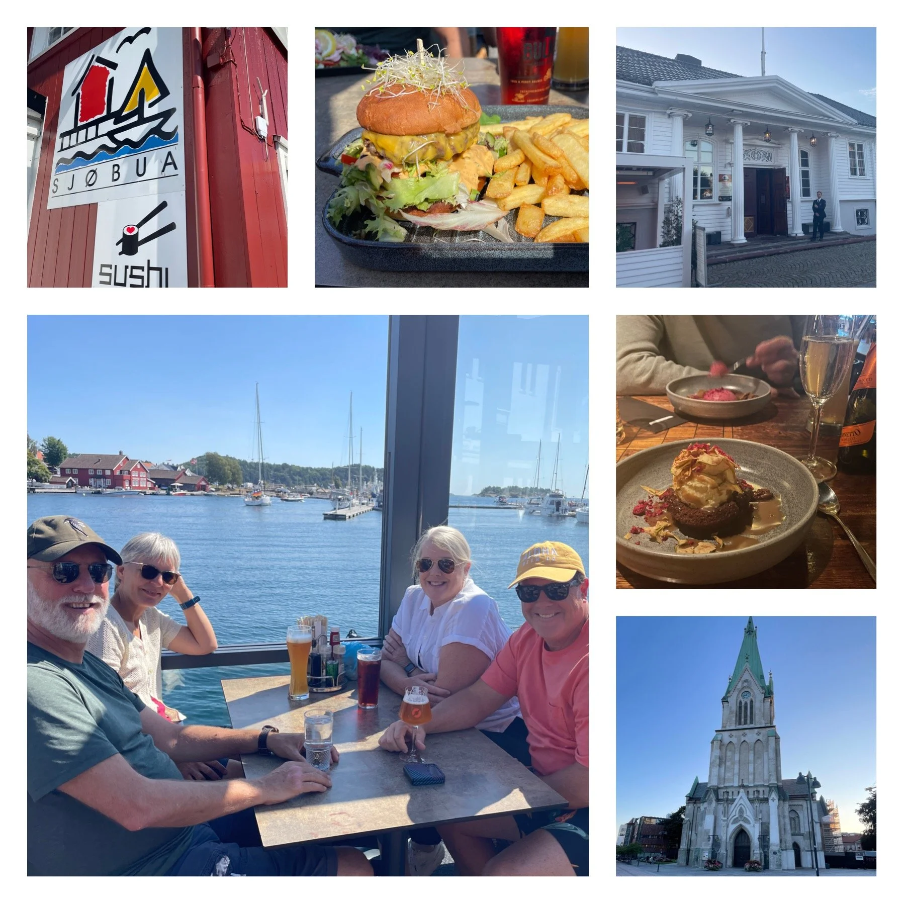 August 5, 2023: On Saturday, we decided to head to Lillesand, just 20 minutes east of Kristiansand. Lillesand is known for their white-painted wooden houses and the historic Hotel Norge, where the famous writer Knut Hamsun was a regular guest in the 1930s. The harbor is full of cozy restaurants with a view of the water and with a wonderful atmosphere. Also alongside the harbor are niche shops, galleries and a museum.