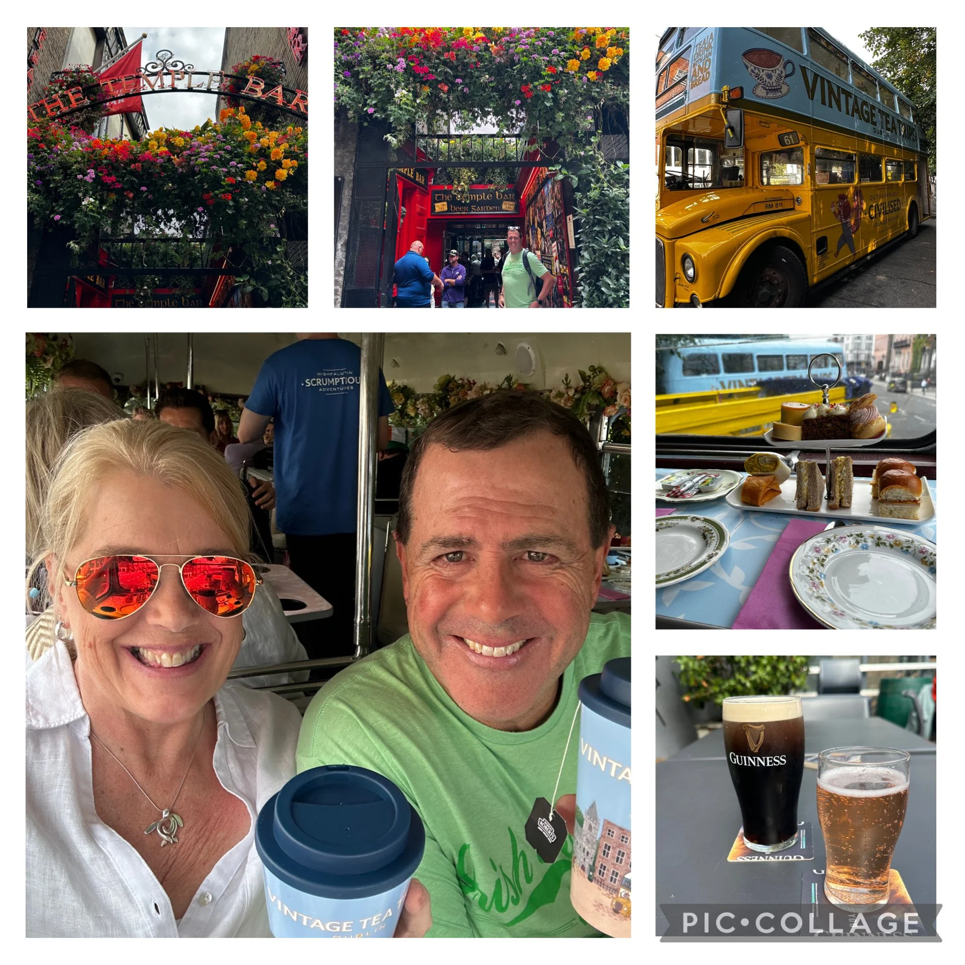 First full day in Dublin, Ireland. We had a bit of a slow start in the morning as we were recovering from our jet lag (I can’t remember the last time I slept until 8:15AM) and struggled to figure out how to get hot water for a shower in our flat. In the end, we had to contact our host to have them come out and fix it. We headed out for an early lunch at T.P. Smith’s which is our neighborhood pub and shared a chicken caesar wrap and some chips. We knew we had an afternoon tea at 3:30pm and didn’t want to overeat. After lunch, we did a walk about on the other side of the Liffy and stopped in at what we thought was the famous Temple Bar, but ended up being Fitzsimons Temple Bar, not the “The” Temple Bar. However, they did have a very nice Rooftop Garden, so we did enjoy sitting up there and enjoying a pint along with the nice weather. Afterward, we went to the real Temple Bar and while standing at the bar, I ran into someone I used to work with at 3M. What a small world!! She recognized me and we were both shocked to see each other. It was great to catch up and hear news about the company.