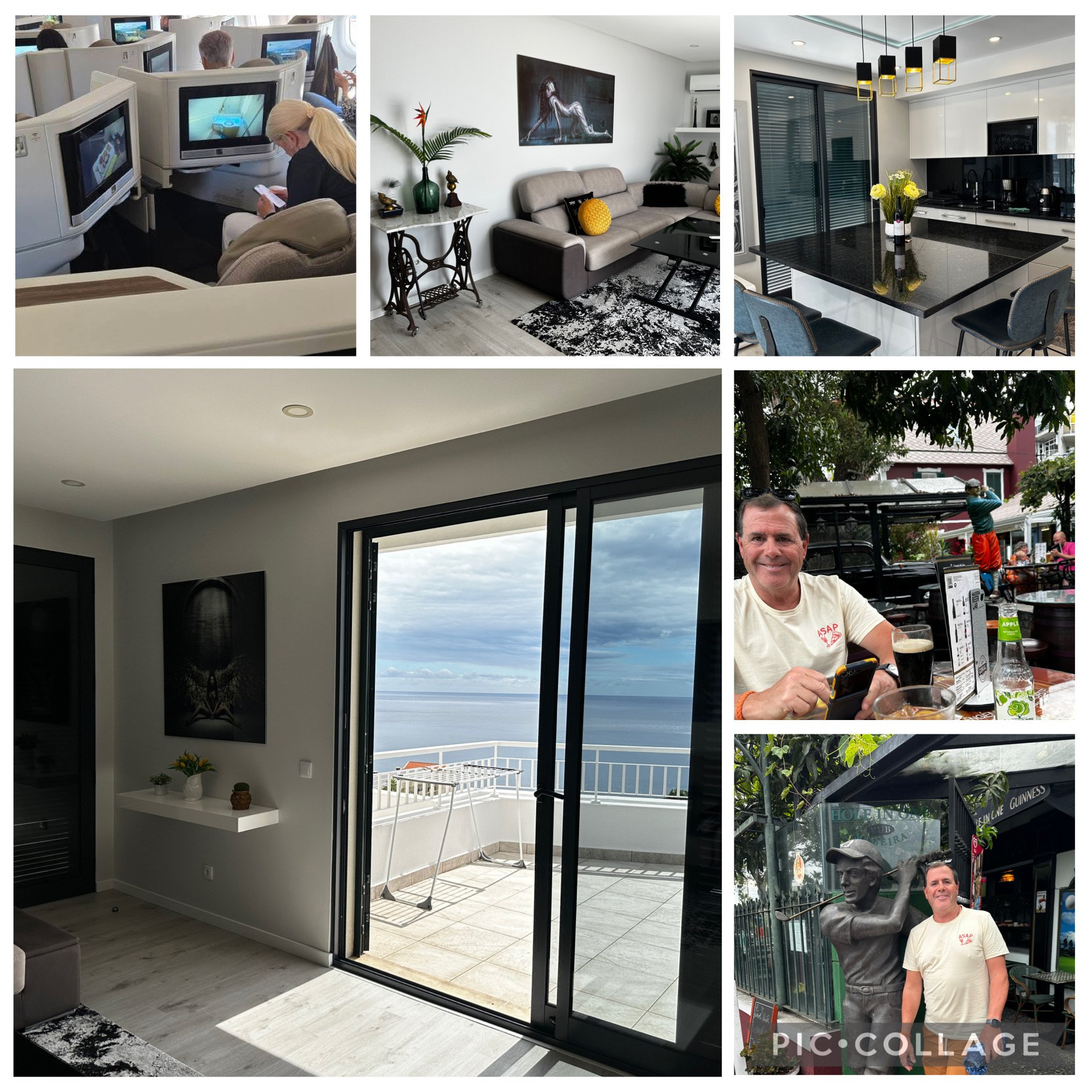 We flew TAP Portugal to Madeira and were lucky to win a bid on upgrading to business class, so we had very nice seats and service on our flight here. We met up with our Airbnb host at the apartment and he gave us the keys and a tour. We are on the 6th floor and have an amazing view of the Atlantic! The apartment is really beautiful and we are excited to stay here for the next 6 days. After we got unpacked, we headed out to get some groceries just down the road and then it was off to get the lay of the land and find out what is around us. We found a couple spots we want to go back to, a bar called A Hole in One that reminded us of Ireland and a couple of restaurants. We grabbed a pizza close to our place for dinner before heading back to relax for the evening. We can’t wait to wake up and sit out on the veranda while we drink our morning coffee.