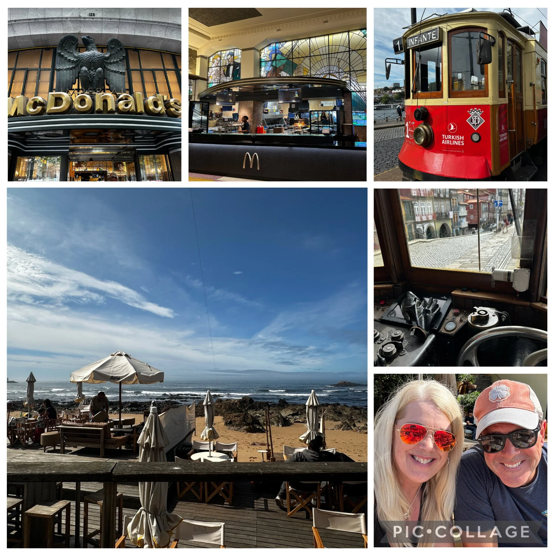 September 12, 2025: Day Trip! Today our first stop was McDonald’s Imperial. I am sure you are wondering why on earth we would go to McDonald’s in Porto, but it was built in what used to be Café Imperial, a historic 1930s café, in a prime location in Porto. The renovation kept many Art Deco features including stained glass windows, ornate ceiling friezes, crystal chandeliers, decorative facades, and a large bronze eagle above the entrance. The whole ambiance is very different from a typical McDonald’s. It feels more like a historical café or an elegant heritage space than a fast-food joint, so we had to try it!
