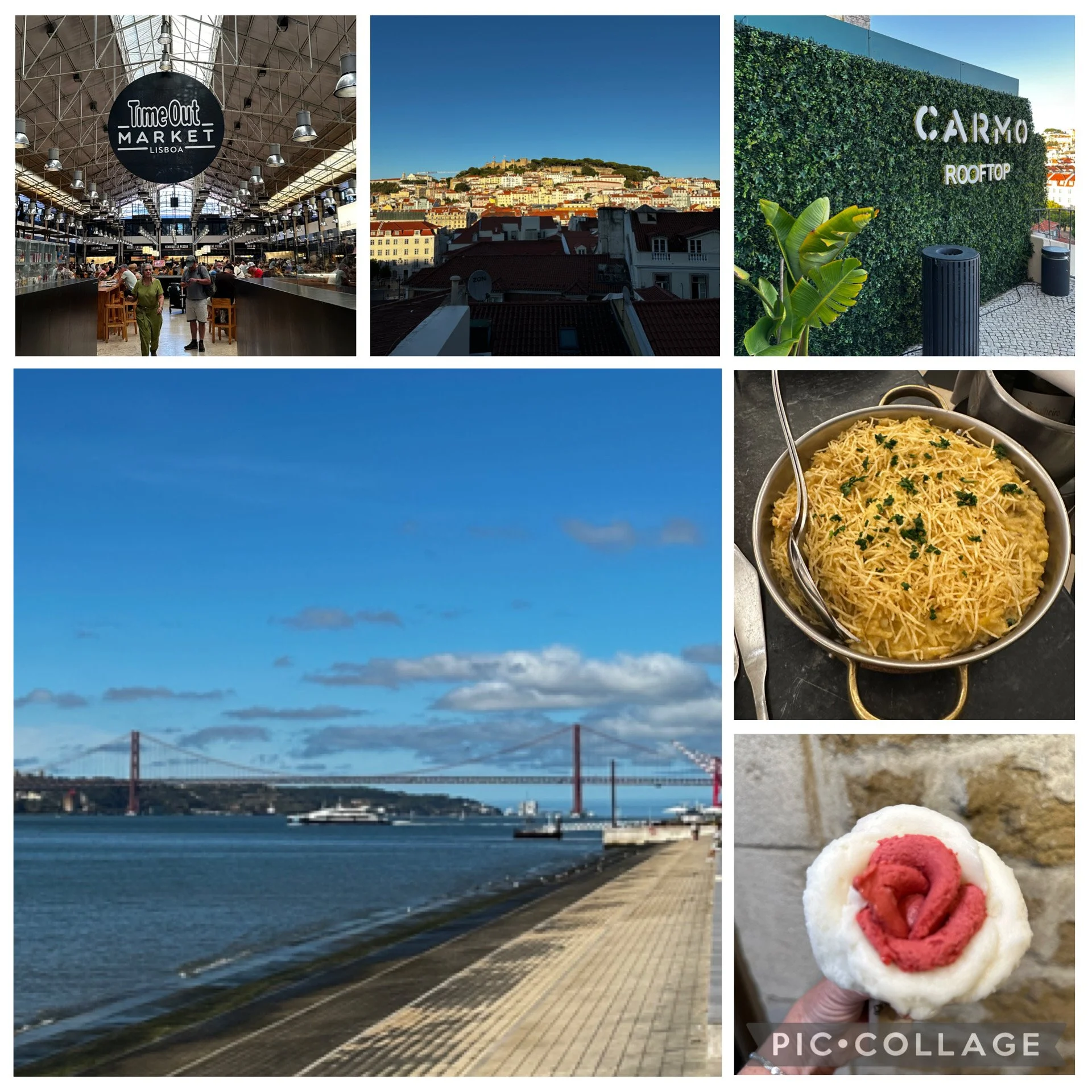 Our official first stop of the day was Time Out Market. We first heard about Time Out Market while watching the Lisbon Somebody Feed Phil episode which was filmed in 2018. He had tried food from a couple different stalls there and so we though we would retrace his steps. Unfortunately, a lot has changed in the seven years since he visited. It is much more commercialized and less of a market and more of a food hall. Also, the canned sardine shop we wanted to visit is no longer there. It moved to a different location. We still enjoyed our time there, we each found a vendor for some lunch. Jimm had a tuna steak sandwich and I had a margherita pizza. Taylor’s Port, a port wine maker we were going to stop at in Porto, had a counter there so we shared a tasting of their port wine. We also shared a delicious lemon meringue tart. Even though it wasn’t what we expected, we would still recommend a stop here as there are many options of different food you can try in one location and it is located close to the boardwalk.
