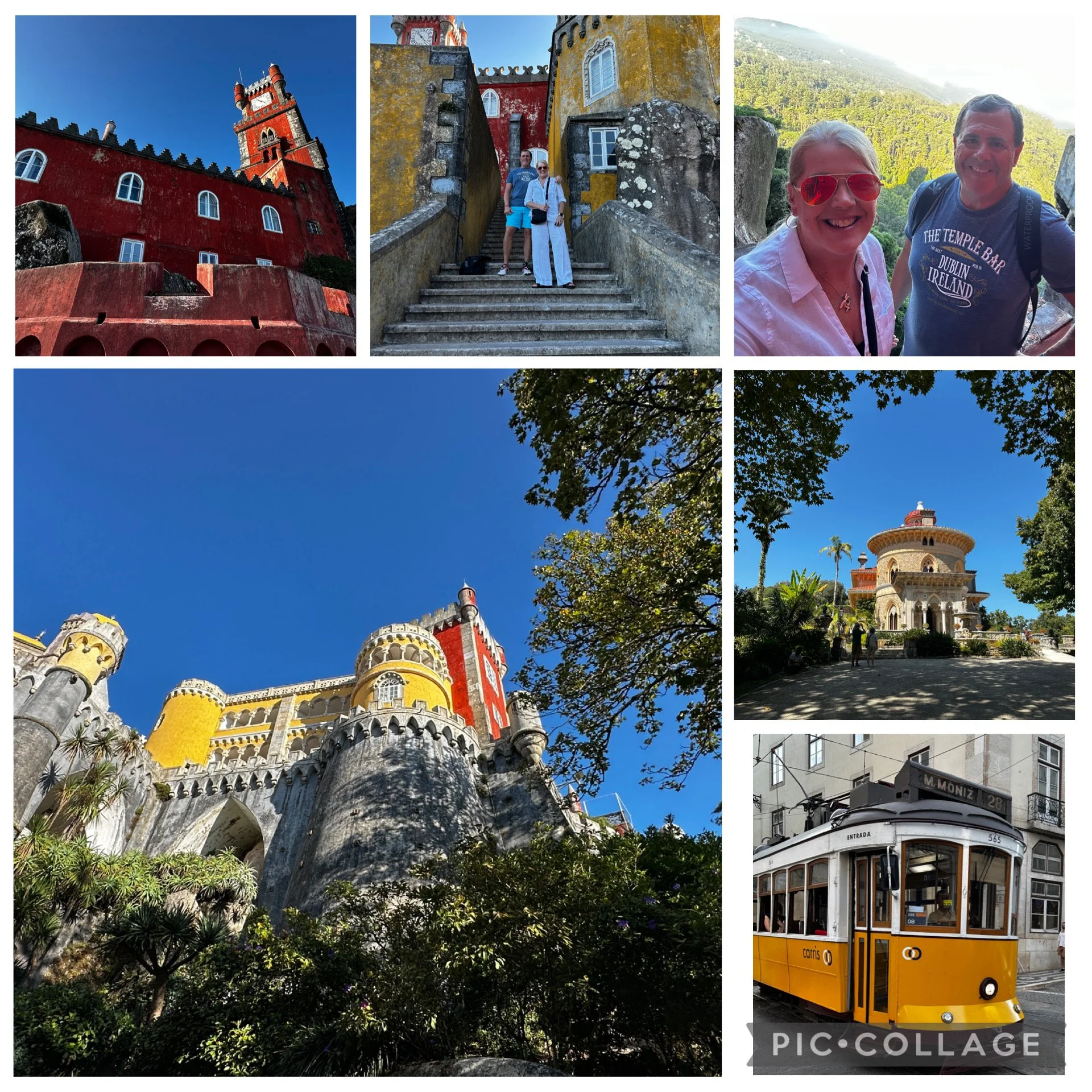 September 16, 2025: Tuesday was a day trip to Sintra via a tour we booked through Get Your Guide. We had an amazing Portuguese tour guide by the name of Gustavo. It was a small group of just 7 people. Our first stop in the morning was the famous Pena Palace. This is one of Portugal’s most iconic landmarks built on the ruins of a medieval monastery. The colorful palace was commissioned by King Ferdinand II in the mid-1800s as a summer retreat for the Portuguese royal family. Its whimsical blend of Gothic, Renaissance, and Moorish influences, combined with bright red and yellow façades, creates the look of a fairytale castle. It is surrounded by lush gardens and sweeping mountain views and is a UNESCO World Heritage site, drawing visitors from around the world to experience its dreamlike charm. It was a long steep climb to get up to the castle, but it was worth it. The views from the castle were absolutely beautiful.