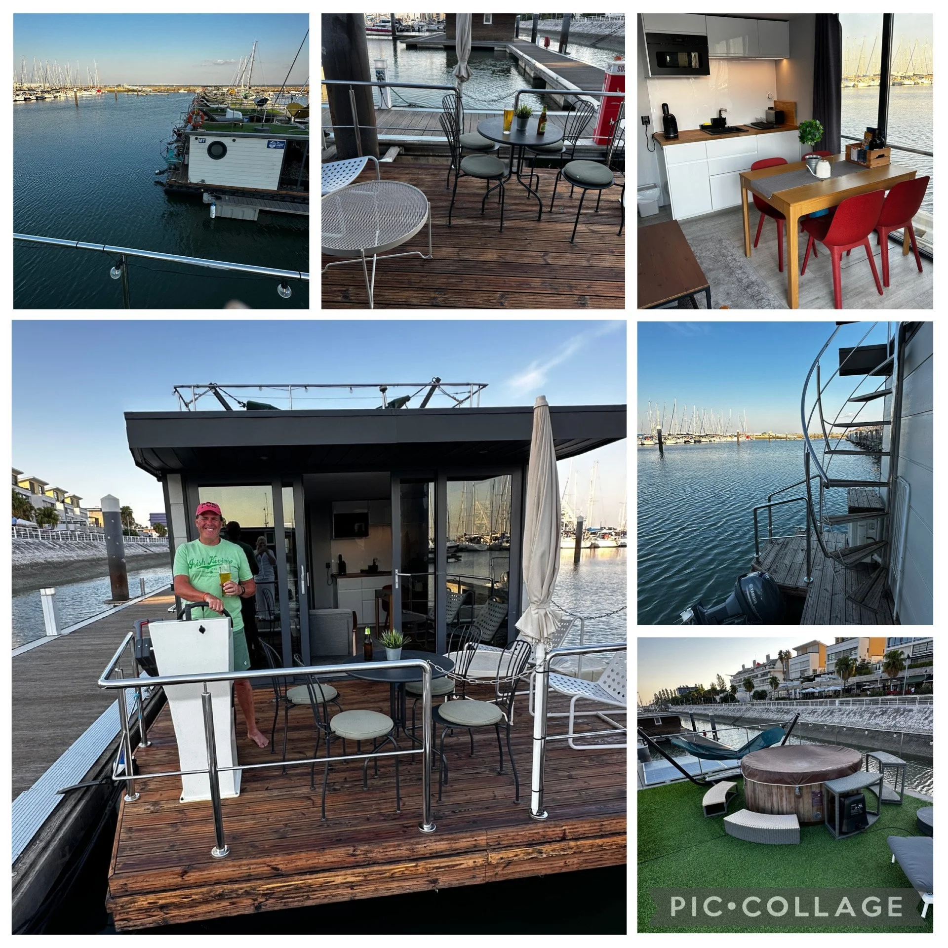 September 29=30, 2025: Final days in Portugal! We got up and enjoyed our veranda and sunrise for the last time in Madeira before finalizing our packing and heading to the airport. We had fast track again through security, so it was pretty easy to get to the lounge and then to our gate. We were lucky with the weather again, so the flight was calm and very easy. Then we took a Bolt to our final accommodations which was call The Homeboat Company. It is a unique place in Lisbon right in the harbor where you can stay in houseboats. I had booked the smallest one they had, but they upgraded us to their largest boat because it was available, which was so cool! It was 2 bedrooms with a living room and kitchen area as well as a jacuzzi on the roof. We were wishing we had booked a couple days at this place because it was really cool (see picture above)! Unfortunately we only had the evening to spend there and had to be out by 7:00AM the next morning to head home so we couldn’t take full advantage of the opportunity. If we got to Lisbon again in the future, we plan to book a couple days there.